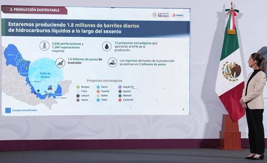 “Los datos que hoy se presentaron están perfectamente analizados de las capacidades de Pemex para desarrollar estos proyectos y seguir pagando su deuda, disminuir la deuda y al mismo tiempo permitir el pago a proveedores”, manifestó la mandataria.