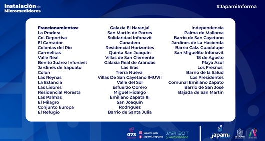 De igual manera, Japami pone a disposición de la ciudanía las líneas de atención 073 y las redes sociales para brindar mayor información al respecto o para realizar cualquier reporte derivado de estos trabajos.