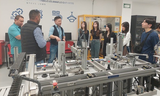 Los estudiantes japoneses, quienes aprovecharon su llegada al estado para cubrir un intercambio de un curso intensivo para aprender español, el cual forma parte de un convenio con la Universidad de Guanajuato que tendrá una duración de un mes, también hicieron un recorrido por el área de automatización y control, ahí tuvieron clase muestra de la operación de los robots para luego dirigirse al Centro Avanzado de Envase y Embalaje.