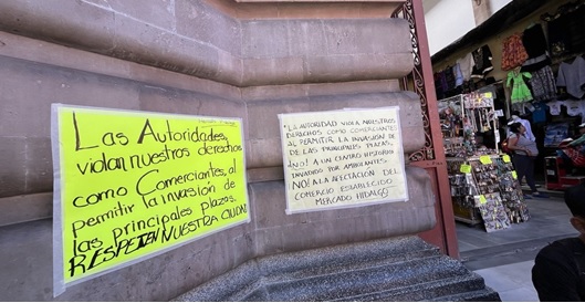 Roberto Loya, comerciante del mercado Hidalgo, señaló que además de la competencia desleal con quienes se instalan en las plazas públicas, el municipio ha sido tolerante con los vendedores que se instalan en las puertas del mercado y que bloquean las salidas de emergencias.