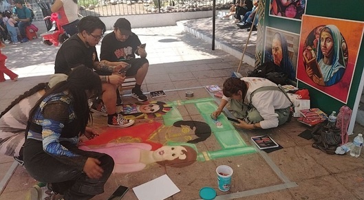 En esta ocasión Erick Enriquez junto con otros artistas de madonnari, Tania García Juárez, Cristal Chávez, Alberto Mota y María del Rocío García Aguilera realizaron una pieza en el jardín principal.