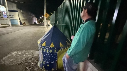 A pesar del frío y la oscuridad de la madrugada, el hombre permaneció en la banqueta, debido a que el personal de seguridad presuntamente le negó el acceso, a pesar de los ruegos y el intento de varios vecinos por apoyarlo.