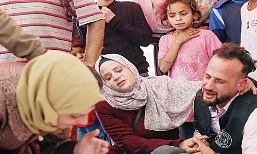 Otro bombardeo contra una carpa de desplazados en Beit Lahia, en el norte, causó también varios muertos.