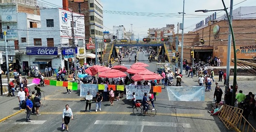 Nuevamente más de 10 rutas fueron desviadas para continuar con su trayecto, pues los comerciantes decidieron sentarse justo entre la calle Belisario Dominguez con la avenida Miguel Alemán.