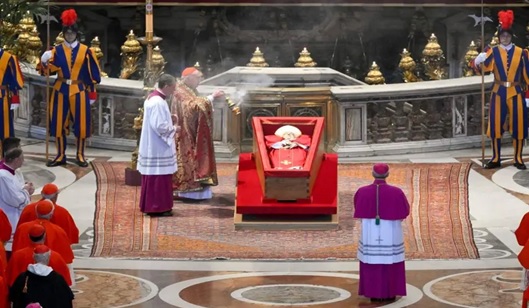 El féretro de madera que guarda su cuerpo fue colocado frente al altar mayor, sobre la tumba de San Pedro. En un gesto de respeto, los cardenales presentes se acercaron en parejas al ataúd para despedirse del líder religioso.