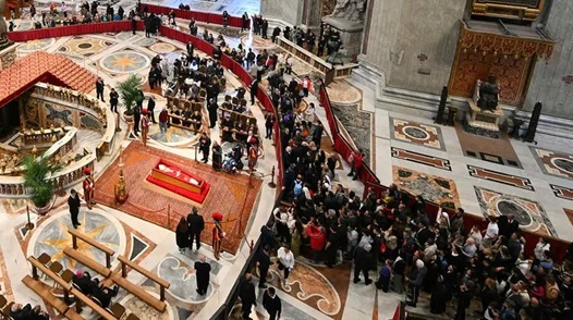 Una marea humana inunda desde el miércoles el Estado más pequeño del mundo para presentar sus respetos al primer pontífice latinoamericano, cuya muerte el lunes a los 88 años conmocionó a la Iglesia católica y al planeta.