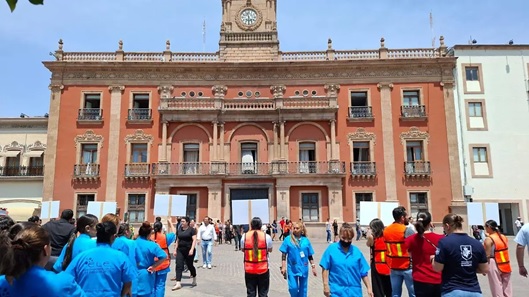 En punto de las 11:30 de la mañana sonó la alarma en la Presidencia de León, con un tiempo de 4 minutos y 11 segundos con 611 personas entre servidores públicos y visitantes.