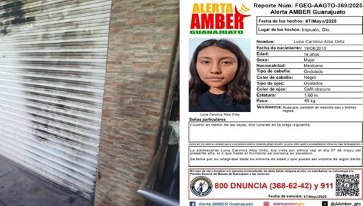 El miércoles pasado, hombres armados irrumpieron en una tienda de abarrotes ubicada en la calle Pedro Moreno, en pleno Centro de Irapuato. Además de robar dinero en efectivo y mercancía, los agresores se llevaron a Luna Carolina, de 14 años de edad. Ante ello, se activó una Alerta Ámber para su localización.