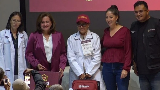 Alma Alcaraz dio arranque al programa Salud Casa por Casa con la entrega de kits médicos a los 708 especialistas en salud que van a visitar a las personas adultas mayores y con discapacidad.