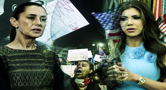 La secretaria de Seguridad Nacional de EU, Kristi Noem, acusó a la presidenta de México, Claudia Sheinbaum, de fomentar las protestas contra el gobierno en Los Ángeles, California.