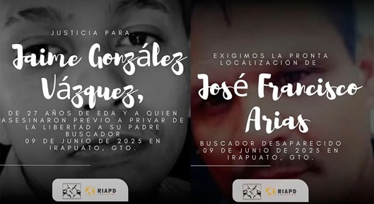 La Unión y Red Nacional de búsqueda de personas, además de la Red Internacional de Asociaciones de personas desaparecidas, exigieron la localización del buscador Francisco Arias, la protección de personas buscadoras de Irapuato y que no quede impune el asesinato de Jaime González.