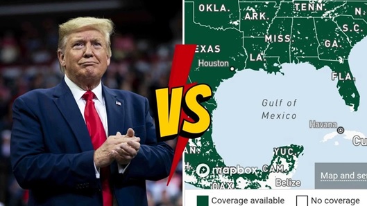 En otra batalla perdida de Donald Trump por cambiar el nombre del Golfo de México por Golfo de América, la empresa de telefonía de los hijos del presidente, Trump Mobile, en su mapa de cobertura mostraba el nombre Golfo de México ignorando el decreto de Trump.
