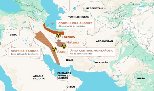 En Irán, la montaña se ha convertido en parte del sistema defensivo. No es un telón de fondo: es un escudo. En un país donde más del 50 por ciento del territorio está cubierto por cordilleras, la geografía ha sido integrada al diseño del poder atómico. Desde Fordow hasta Natanz y Arak, las principales instalaciones nucleares están dispersas en terrenos elevados, alejados, difíciles de alcanzar, y en algunos casos, excavados directamente en roca.