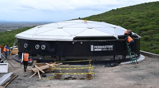 Actualmente se instalan placas de vidrio fusionado al acero, así como la cúpula superior, proceso que se realiza mediante un sistema de izaje con transmisión mecánica simétrica. Este tipo de tanque combina la resistencia estructural del acero con la durabilidad y protección anticorrosiva del recubrimiento vítreo, garantizando una vida útil de hasta 50 años.