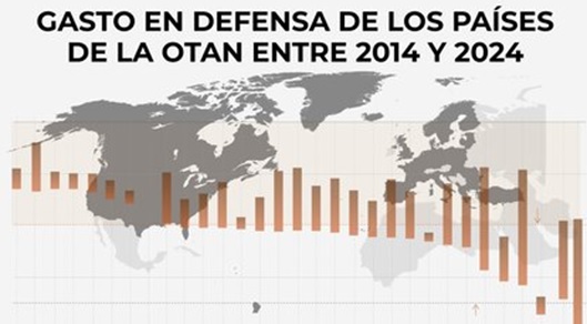 En el extremo inferior, España lleva años rezagada, y el primer ministro Pedro Sánchez, pese a haber firmado el acuerdo,declaró que el país sólo gastará el 2,1% del PBI.