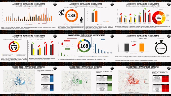 - Se registró un total de 168 accidentes de tránsito en el tercer bimestre lo cual mostró un aumento del .5% en referencia al tercer bimestre del 2024.