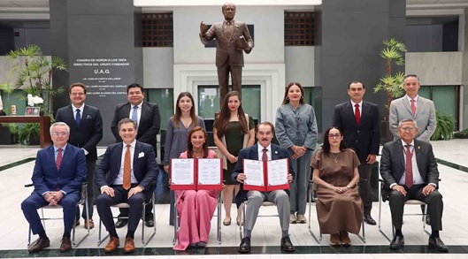 La firma del convenio se realizó en la Rectoría de la UAG y la ceremonia fue encabezada por el Rector de la UAG, Lic. Antonio Leaño Reyes, y la Presidenta del Sistema DIF Jalisco, Sra. Maye Villa de Lemus.