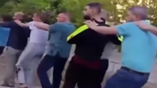 —Un minuto. ¿Quieres grabarlos? —pregunta uno de los agresores a su camarada.