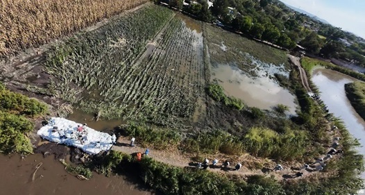 Por su parte, el Gobierno Municipal a través de sus dependencias, realizaron trabajos de limpieza en las viviendas y vialidades de la comunidad, así como la construcción de un bordo con más de mil 500 costales de arena, en la escotadura detectada en el hombro sur para prevenir un riesgo mayor en la zona.