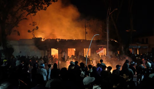 El viernes por la noche, una multitud enfurecida incendió el edificio del parlamento local en Makassar, en la isla de Célebes, dejando a varias personas atrapadas en el incendio. Tres personas murieron y otras cinco fueron hospitalizadas. En otro disturbio en la ciudad, un hombre, presuntamente agente de inteligencia policial disfrazado de repartidor, fue asesinado a golpes por una turba.