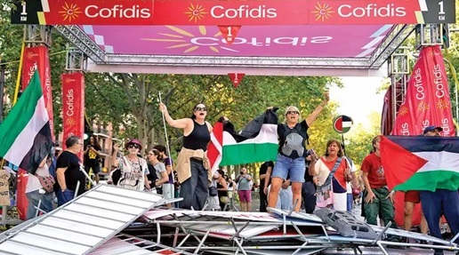 Las protestas perturbaron a los corredores, provocando alguna caída, y varias etapas tuvieron que ser recortadas por los organizadores en un país donde la causa palestina es muy popular.