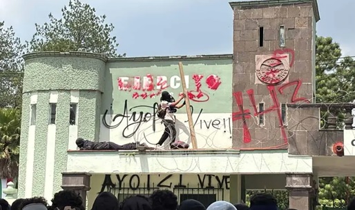 Un grupo de presuntos normalistas vandalizaron y tiraron la puerta del Campo militar número 1, ubicado en el municipio de Naucalpan, en el Estado de México.