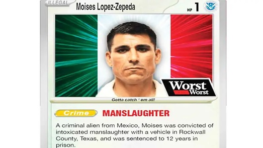 Al final del video aparecen parodias de las tarjetas coleccionables de Pokémon con fotos de inmigrantes arrestados, entre ellos dos mexicanos, y la descripción de sus delitos cometidos.