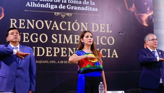 Al conmemorar el 215 aniversario de la toma de la Alhóndiga de Granaditas, la gobernadora Libia García Muñoz Ledo refrendó el compromiso de regresar la paz al estado a un año de que asumió el cargo convirtiéndose en la primera mujer titular del Poder Ejecutivo en Guanajuato.