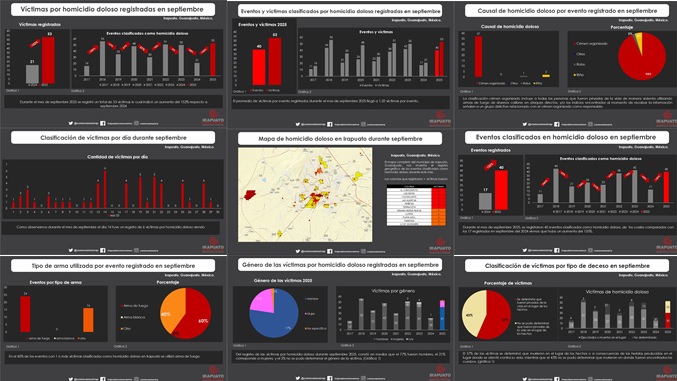 El reporte mensual de víctimas por homicidio doloso del Observatorio Ciudadano Irapuato ¿cómo vamos? presenta la información condensada del registro de víctimas y eventos acontecidos en el municipio de Irapuato, Guanajuato.
