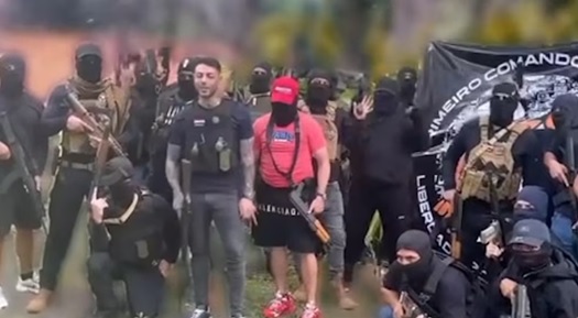 “Estamos preparados para hacer guerra con el que sea, el ‘Colla’, la Policía… No me importa nadie, nosotros estamos siempre listos, siempre. Ténganlo claro”, sostuvo Marset en el video en el que aparece rodeado de personas que portan una bandera del grupo criminal brasileño Primer Comando Capital (PCC) y armas de distinto tipo.