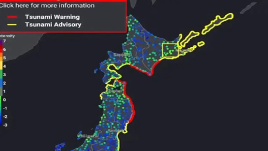 También se activó la alerta de tsunami de hasta un metro para las prefecturas de Miyagi y Fukushima, así como para las costas del sur de Hokkaido, y una alerta menor por posibles cambios en el nivel de la marea en la totalidad de las costas del Pacífico del territorio, donde las autoridades instaron a alejarse de la costa.
