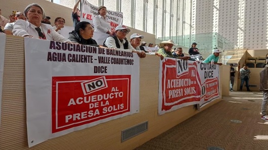 Por la presencia de al menos un centenar de habitantes de los municipios del sur del estado, principalmente de Acámbaro, los diputados locales decidieron no detenerse a discutir la solicitud por los primeros 4 mil millones de pesos para el acueducto Solís-León, pero al hablar de los 4 mil millones de pesos para obras se desató la discusión frente a los reclamos de las personas que llegaron a manifestarse en contra de la obra para extraer agua de la presa Solís para llevarla a los municipios del corredor industrial.