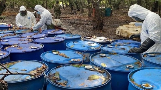 En ese periodo fueron decomisados más de 96 toneladas de metanfetamina, 53 toneladas de cocaína, casi 18 toneladas de marihuana y más de mil kilogramos de fentanilo, además de miles de pastillas de esta sustancia sintética.