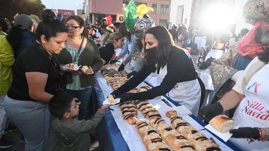 La tradicional Rosca de Reyes fue entregada junto a chocolate caliente, para que las y los asistentes disfrutaran de un agradable momento en el Centro Histórico de la Ciudad; este pan dulce contó con un total de 2 mil Niños Dios.