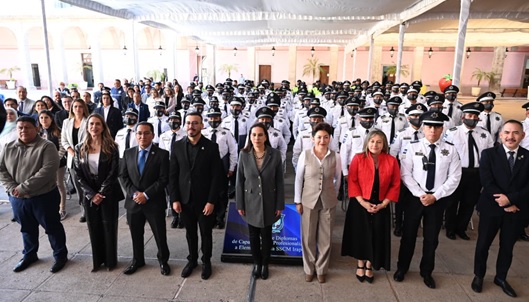 Lorena Alfaro García, presidenta municipal, destacó la importancia de la formación continua de los cuerpos de seguridad como una herramienta fundamental para brindar un mejor servicio a la población y fortalecer la confianza ciudadana.