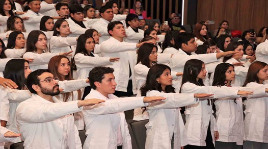 Además, explicó los estudiantes de nuevo ingreso reciben su primera bata blanca, símbolo de compromiso con la Medicina.