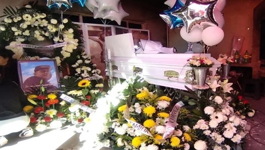 En lo que fuera su hogar de la calle Emiliano Zapata, debajo de un tejado, permanece el ataúd blanco, rodeado de flores, globos y una fotografía con su rostro.