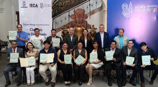 Con el objetivo de fortalecer la calidad de los servicios turísticos y generar mayores oportunidades de desarrollo económico para la población, el Instituto Estatal de Capacitación (IECA) en conjunto con el municipio de Dolores Hidalgo Cuna de la Independencia Nacional, llevó a cabo la clausura del Diplomado de Guía de Turistas Local, programa que contribuye a la formación de especialistas preparados para atender al turismo nacional e internacional.