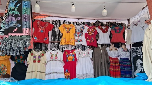 Rosalba, contó que viene de Cherán, el cual se encuentra en la meseta Purépecha de Michoacán, en donde ahí se confecciona cada prenda, un trabajo artesanal que puede llevar desde días, semanas e incluso meses. Instalada en el jardín Xidoo o jardín de los enamorados, espera que este año sea de buena venta.