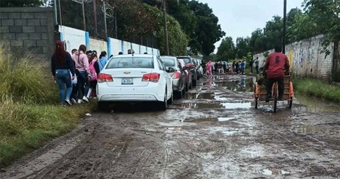 Entre el lodazal tienen que caminar estudiantes y padres de familia de la primaria «Pedro González» en la colonia El Olimpo, debido a que la falta de pavimentación y las lluvias han deteriorado la vialidad.